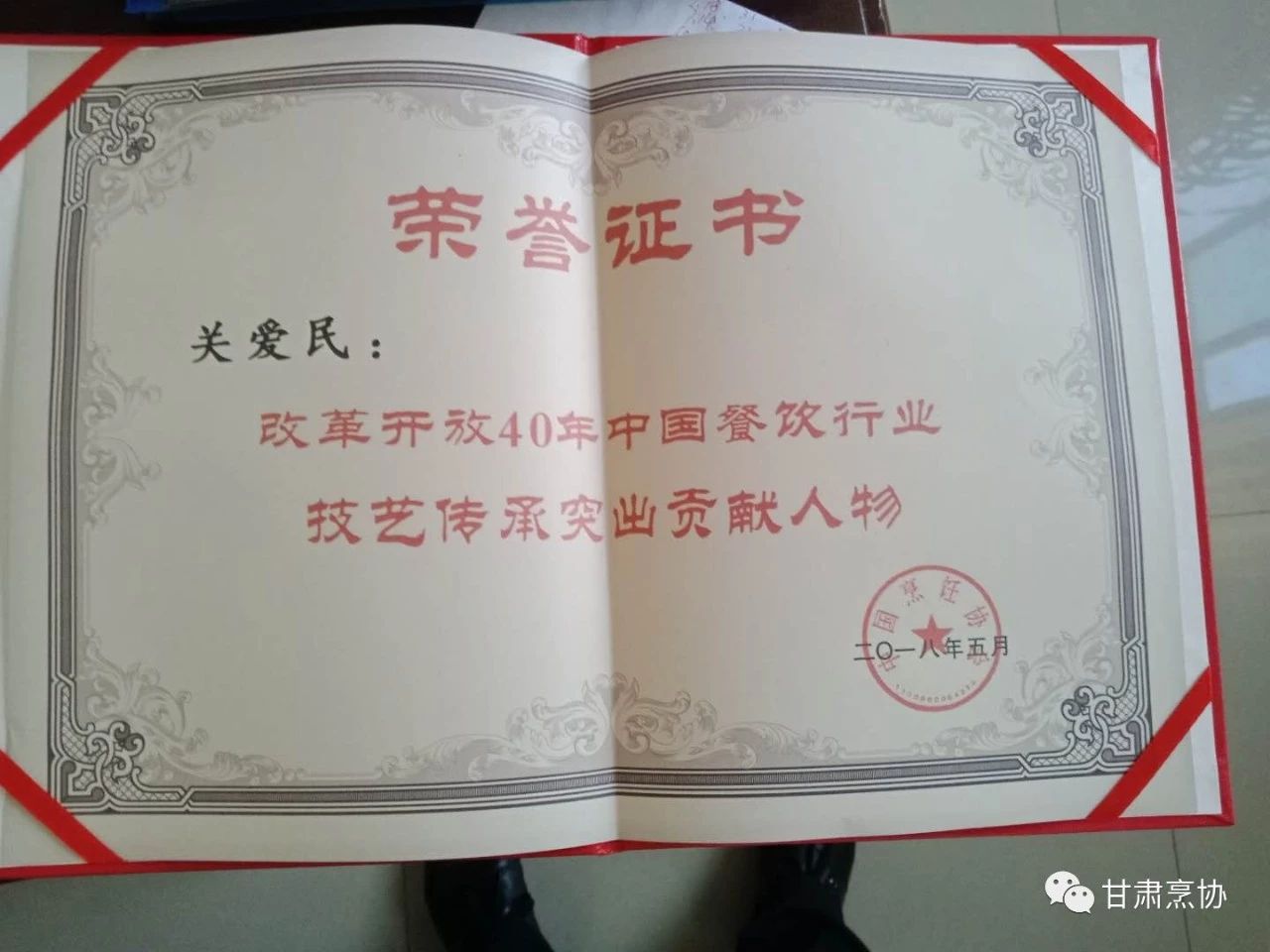 甘肃省烹饪协会会长赵忠禄获“中国烹饪协会特邀副会长”荣誉职务